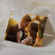 Elevate your wedding reception with these sophisticated 'The Golden Hour Grace' Photo & Floral Wedding Table Numbers. These elegant folded cards combine classic and modern aesthetics, featuring a clean white backdrop on one side and a cherished photo of the happy couple on the other. Each card displays the table number, guest names, couple's names, and wedding date in elegant typography. These minimalist and stylish table numbers will add a touch of sophistication to your wedding reception, creating a memorable and refined ambiance for your guests.