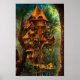 Intricately detailed fantasy treehouse with a golden hue - digital art poster created with AI software.