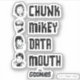 The Goonies | Check out this fun character lineup graphic of the Goon Docks kids: Chunk, Mikey, Data, and Mouth!