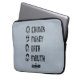 The sleeve is made of nice feeling material and seems very durable. I'm not sure how easy it'll be to clean, but the construction seems sound and the fabric is quick thick. I also like the double zipper. The printing is lovely and appears durable. The white on black contrast is nice, and the design very elegant.