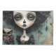 A gorgeous gothic doll and her pet owl mixed media collage painting AI generated