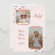 Modern, minimal, and girly graduation photo announcements to celebrate the grad and look back at their journey. Design features a trendy modern design with a 2 photo layout to display then and now graduate photos to create a fun now and then design. Girly script text displaying the words "Then" "Now" are displayed along with fun brush stoke elements and terrazzo design. Customize with the Grad's name, school, and graduation year. Design by Moodthology Papery