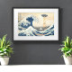 The Great Abduction off Kanagawa Hokusei Remix. The infamous The Great Wave off Kanagawa ukiyo-e woodblock print by Hokusai of a tsunami by Mt. Fuji, with a new element. One of the men from the rowboats is being abducted by a big blue flying saucer. The UFO shoots a beam of light down as it lifts the helpless victim in defiance of gravity.
