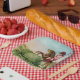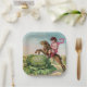 Herds of 'hoppers' are bounding through the vegetable patch. A miniature jockey urges his bunny along as it bounces over cabbage obstacles. The colourful humourous image is perfect for decor, accessories and correspondence.