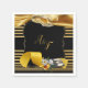 A luxurious shimmering gold silk texture draped through two wedding rings on a dramatic black background with a Deco style stripe to give the design a chic and glamourous look to personalise.with the wedding couple initials.