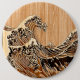 The Great Hokusai Wave Bamboo Wood Style 6 Cm Round Badge