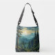 This vibrant crossbody bag features an illustration of a rugged forest landscape on a beautiful day. This item would make a truly delightful gift idea.