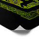 Surrounded by a border of celtic knots, a stylised, mystical forest and riders in tones of green.