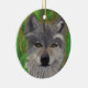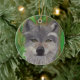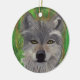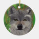 A beautiful steal-eyed grey wolf makes for an amazing ornament