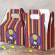Some fun Halloween favour boxes with colourful stripes and the Grim . The text says" Happy Halloween" and can easily be changed using the template . They're perfect for kids Halloween party . Look for matching paper plates and napkins .