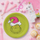 This fantastic, bold illustration is a close-up portrait of the Grinch in full mischievous mode! He has his signature sly grin and bright yellow eyes, but his look is updated with a large, fluffy Santa hat in a fun, unexpected pink/fuchsia color instead of the traditional red. This graphic is perfect for anyone who loves the holidays but embraces a non-traditional, delightfully grumpy, and colorful style!