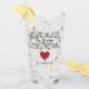 A wedding reception beer glass tumbler for the Groom. A ribbon banner with flowers and leaves in black, along with a red heart. Customise with your wedding date.