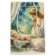 The guardian angel prays by the baby's cradle. (Customisable text: ) Merry Cristmas