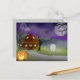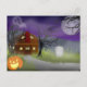This clip art is an image of a haunted house and a yard filled with a creepy and eerie fog. A full moon overlooks the house. Dead trees with a tombstone and pumpkin overlook the landscape. On the back of the postcard is a black opaque to make it a little more spooky. Send this postcard around the holidays.