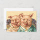 Silly vintage illustration of Mr. and Mrs. Pig happy at home