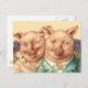 Silly vintage illustration of Mr. and Mrs. pig happy at home