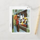 A fine art postcard with the painting by the German expressionist artist, August Macke (1887-1914) titled Hat Shop (1914). A woman with an orange parasol window shopping at a hat shop.