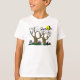 This image features dead and eerie trees with gravestones sitting under a branch on a bed of grass. A yellow crescent moon is shining brightly with a few clouds. The bats can be seen flying around the moon. The ghosts are floating in the air to keep people out of the graveyard. These tees are available in girls as well and are available in assorted styles, colours and sizes. A great Halloween tee.