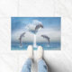 A dolphin jumps out of the heart into the ocean. This dolphin is expected from two other dolphins. Fill in your information in the template. Click on Customise to personalised the gift product!