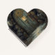 A mysterious wooden door stands hidden in the tidal flats, half‑buried in sand and sea‑light.