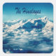 Himalaya mountain range in Asia including Earth's highest peak Mount Everest. These are snow covered sitting in the clouds with a beautiful blue sky. With text over the mountains.