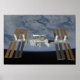 The International Space Station, backdropped by the blackness of space and Earth's horizon.