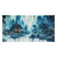 A Japanese landscape in shades of azure in a watercolor style.