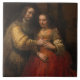 This design features a painting by 17th-century Dutch painter Rembrandt Harmenszoon van Rijn (1606–1669), who is generally considered one of the most important artists in the entire history of Western art. The painting has been said to show a Jewish father bestowing a necklace upon his daughter on her wedding day, although this interpretation has been disputed. It could show a husband giving a gift to his wife. In any case, it clearly shows a couple expressing some kind of love. It could, indeed, have been intended to represent figures from the Old Testament. According to Christopher White, who wrote a biography of Rembrandt, the piece is "one of the greatest expressions of the tender fusion of spiritual and physical love in the history of painting." The original artwork is currently housed in the permanent collection of the Rijksmuseum Amsterdam.