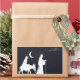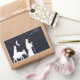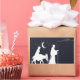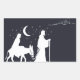 Unique Christmas design featuring a white stamp of Mary and Joseph on the journey to Bethlehem seen in the distance.