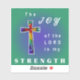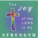 A brightly colored Christian cross with an inspirational Scripture quote based on the Bible verse Nehemiah 8:10 "The joy of the Lord is your strength".