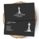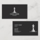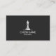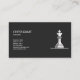 A minimalist business card featuring a stylised chess piece, specifically a white king, with details highlighting its crown and regal posture, conveying a sense of sophistication and strategic thinking. It could be used by a chess master, a creator or store of board games, strategy or role-playing game, corporate identity, etc.