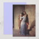 Francesco Hayez painting of "The Kiss" a middle ages inspired painting of a man and maiden in passionate embrace at the bottom of a castles steps. Vintage fine art Italian painting from 1859.