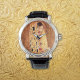 A wristwatch with the oil painting by Gustav Klimt (1862-1918), The Kiss (c. 1907). Gustav was born in Austria. Influenced by the Art Nouveau period, also the Arts and Crafts movement. Klimt used layers of gold leaf. A man and woman in a tender embrace.