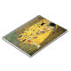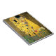 The Kiss was painted by the Austrian Symbolist painter Gustav Klimt between 1907 and 1908. The canvas depicts a couple embracing, their bodies entwined in elaborate robes decorated in a style influenced by both linear constructs of the contemporary Art Nouveau style and the organic forms of the earlier Arts and Crafts movement. The work is composed of oil paint with applied layers of gold leaf, an aspect that gives it its strikingly modern, yet evocative appearance.