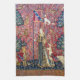 The Lady and the Unicorn, Touch (La Dame a la licorne, Le toucher) Mediaeval Tapestry (arround 1500). This tapestry is part of a series of six. Each tapestry feature a mediaeval lady in various poses. Each scene depicts one of the five senses, as well as a sixth scene labelled Mon Seul Desir (my only desire).