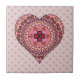 A classic Valentine’s Day heart masks a concentric circle mandala featuring layers of holiday themed designs such as flowers, Cupid's arrows, and hearts in various styles, including classic, paisley, and woven.