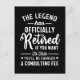 If you are retired or retiring soon you're sure to love this funny retirement design featuring the text: The legend has officially retired, if you want to talk you'll be charged a consulting fee.