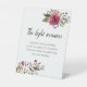 This memorial wedding pedestal sign, with it's burgundy watercolor flowers and mix of calligraphy and simple fonts, is a beautiful way to honour the loved ones at the wedding. It can also be used at a Celebration of Life or memorial service.