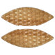 A glossy varnished rattan hand woven wicker basket weave image with a lacquered high gloss. A natural shellacked rustic look consisting of multiple horizontal wood strands weaved over multiple vertical strands in varying shades of light brown and beige.