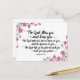 Beautiful calligraphy style Biblical blessing from the book of Numbers, "The LORD bless you, and keep you. The LORD make his face to shine on you, and be gracious to you. The LORD lift up his face towards you, and give you peace." Design is accents with beautiful pink flower illustration in upper left and lower right hand corners.