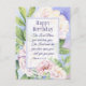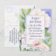Birthday blessing inspirational scripture postcard depicts a beautiful pink and blue watercolor floral design. It features a portion of Bible Verse Numbers 6 24-26, "The Lord bless you and keep you; The Lord make His face shine upon you, ... and give you peace."_