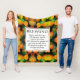 A stylish CHRISTIAN BLANKET with inspirational quote based on the biblical blessing in Numbers 6:24-26, which commences THE LORD BLESS YOU AND KEEP YOU. The design shows a citrus inspired orange and yellow bokeh pattern in the background. The Scripture verse is CUSTOMIZABLE so you can change the Bible version if you wish (some people prefer NIV, NKJV, KJV, etc). There is also the option to PERSONALIZE by adding your name or other text (appears beneath).