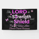 Inspirational breast cancer quote of “The Lord is my Strength and my Shield and “Faith Hope Love Breast Cancer Awareness” for breast cancer survivors and fighters who have faith in God.