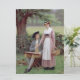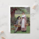 This design features a painting by the English artist Edmund Blair Leighton (1852–1922). It depicts a scene from Tennyson’s 1835 poem, in which a rich Lord pretends to be poor in order to win a woman’s heart. However, in this image, the Lord of Burleigh is dressed elegantly and he is holding the hand of his lover as she stands beside him; they have now accepted each other in love. The Lord is seated with an easel on his lap as he paints a landscape. His true love is is wearing a long dress and holding a wooden basket: perhaps she is foraging food from the countryside or perhaps she has been shopping. The two lovers are together in a rural field with a large tree surrounded by plants and flowers in the background.