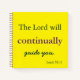 A lovely notebook, this item makes a great prayer journal. "The Lord will continually guide you" written in beautiful navy blue and purple letters on a yellow background. Makes a great gift for a loved one.