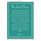 The Lord's prayer: "Our Father, which art in heaven, hallowed be thy Name, thy kingdom come, thy will be done, in earth as it is in heaven. Give us this day our daily bread. And forgive us our debts, as we forgive our debtors. And lead us not into temptation, but deliver us from evil. For thine is the kingdom, and the power, and the glory, for ever. Amen." A wonderful prayer for Christian families. Beautiful teal background and white text. For encouragement, sympathy, get well soon occasions.