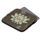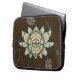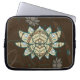 Layers of Celtic weave and Indian Mehndi from the Lotus Weave design have been masked under a lotus blossom shape in shades of teal and brown.
