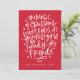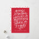 Send magical holiday greetings to friends and family with our festive non-photo holiday card. The phrase "The magic of Christmas never ends, its greatest gifts are family and friends" is displayed in a white hand-lettered script with a red background. Personalise the front of the cute holiday card by adding your name and the year. The card reverses to feature your custom message in white text inside of a red rectangle frame. The background features a pattern of red stars and dots.