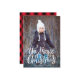Chic holiday photo card displaying your favourite photo with "The Magic of Christmas" in a white, hand-lettered script overlay. Personalise the Christmas photo card by adding your name or custom text. The back features an elegant red and black plaid pattern.