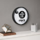 The size of the clock is dramatic and the abstract alcohol ink design is soothing and intricate at the same time. I chose the black frame that adds pop to the blue and gold design. The gold printing would be better in a slightly darker or larger font. I love it and I’m looking for just the right place in ny new apartment. I would recommend this clock for a personal gift or a present. I feel that the quality is excellent for the money! I’m a bit of a clock nut so I’m pretty particular about my purchases. The clock is larger in diameter than many if the clocks I have, so it stands out very well. I think a slightly darker printing color and a moderately larger size would best suit a professional decor or add more impact in a work place item.